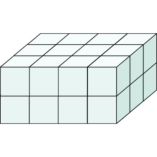 Nếu hình hộp chữ nhật dưới đây được ghép bởi các hình lập phương có cạnh dài 1 cm thì chiều dài của hình đó ghép được bao nhiêu hình lập phương?