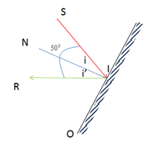 Góc phản xạ bằng góc tới: i = i' = 45o