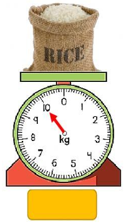 Bao gạo cân nặng bằng 2 quả cân 2g và 3 kg