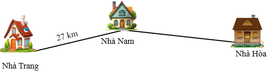 Quãng đường từ nhà Trang đến nhà Nam dài 27km, quãng đường từ nhà Nam đến nhà Trang ngắn hơn quãng đường từ nhà Nam đến nhà Hòa 6km. Độ dài quãng đường từ nhà Trang đến nhà Hòa là: