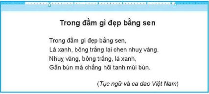 Bạn Minh đã soạn thảo một câu ca dao và định dạng văn bản như Hình 11. Theo em, bạn Minh đã sử dụng những lệnh nào để căn chỉnh lề của các đoạn văn bản?