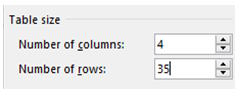 Bạn An đã nhập số hàng, số cột như hình để tạo bảng. Bảng được tạo sẽ có: