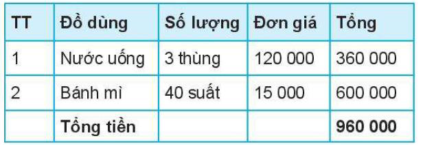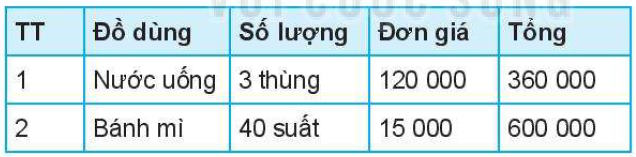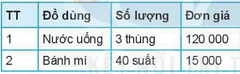Để chuẩn bị cho buổi dã ngoại, An đã lập danh sách các đồ dùng cần mua và trình bày như sau, theo em cách nào là hợp lí, đảm bảo thông tin, cô đọng, dễ tìm, dễ tổng hợp?