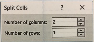 Bạn Lan đã nhập số hàng và số cột như hình bên dưới để tách một ô thành nhiều ô