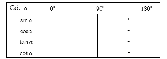 Học sinh ghi nhớ bảng xét dấu giá trị lượng giác dưới đây: