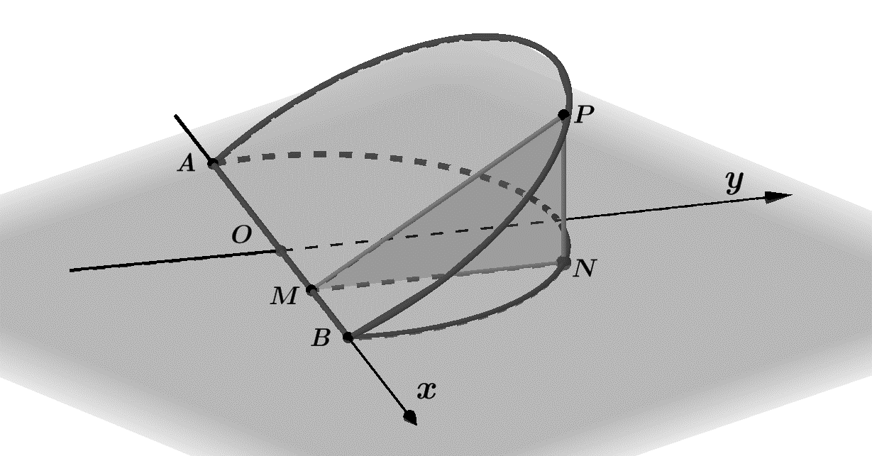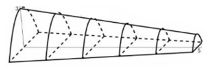 ; khi cắt hình này bởi mặt phẳng vuông góc với đấy của nó, ta được thiết diện là một hình parabol có độ dài đáy gấp đôi chiều cao parabol. Chiều cao của mỗi thiết diện parobol cho bởi công thức