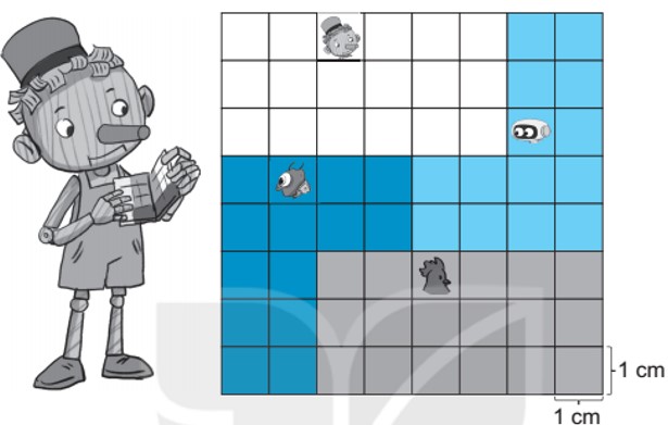 Dế mèn: 14 cm2, rô-bốt: 14 cm2, gà: 18 cm2, Bu-ra-ti-nô: 18 cm2.