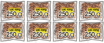 Vậy 8 gói lạc rang nặng là: 250 × 8 = 2 000 (g)