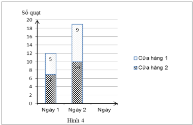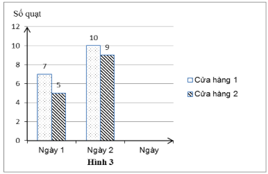 Biểu đồ cột kép biểu diễn số quạt bán ra trong hai ngày của hai cửa hàng kinh doanh vẽ đúng là: