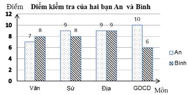 Môn học nào bạn Linh An đạt tiến bộ ít nhất?