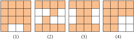 - Hình có số ô vuống tô màu nhiều nhất là hình số 1||(1), có 14 ô vuông được tô màu.