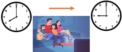 Gia đình Mai xem ti vi vào buổi tối từ lúc 8 giờ đến 9 giờ.