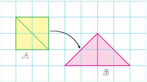 Diện tích của hình A bằng||lớn hơn||bé hơn diện tích của hình B.