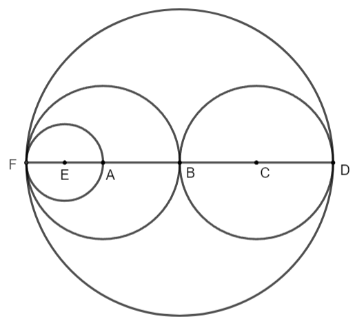 Cho hình tròn tâm O bán kính 2 cm và hình tròn tâm I có bán kính gấp hai lần bán kính hình tròn tâm O (như hình vẽ).