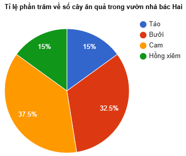 Trong vườn có số cây táo là: 200 x 15% = 30 (cây)