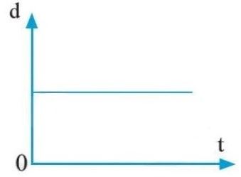 Đồ thị thể hiện độ dốc bằng không, vật đứng yên. Vì đồ thị biểu diễn một đường thẳng nằm ngang song song với trục thời gian và cắt trục độ dịch chuyển (d) tại một điểm.