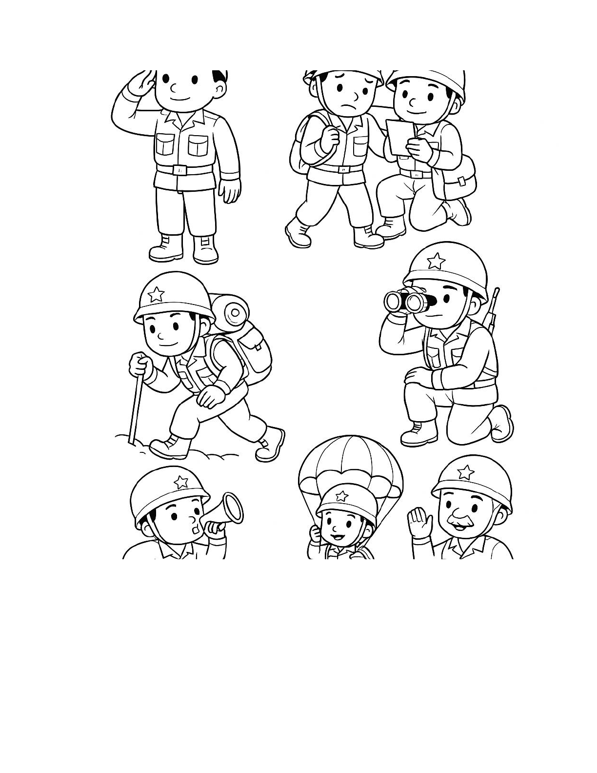Tô màu tranh các chú bộ đội không chỉ giúp các bé mẫu giáo rèn luyện kỹ năng tô màu, phát triển khả năng quan sát, lựa chọn màu sắc và vận động tinh thông qua thao tác tô màu khéo léo mà còn được làm quen với hình ảnh người lính dũng cảm giúp hình thành những cảm xúc tích cực đối với nghề nghiệp bảo vệ Tổ quốc. Qua những bức tranh sinh động về các chú bộ đội đang làm nhiệm vụ, trẻ sẽ được làm quen với hình ảnh người lính dũng cảm, từ đó nuôi dưỡng lòng biết ơn và tình yêu quê hương, đất nước. Dưới đây là những bức tranh tô màu các chú bộ đội đẹp dành cho các bé mầm non, mời cha mẹ cùng tham khảo chi tiết và tải về tại đây.