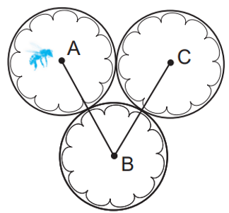 Trong hình vẽ bên có ba hình tròn, mỗi hình tròn đều có bán kính 9cm.