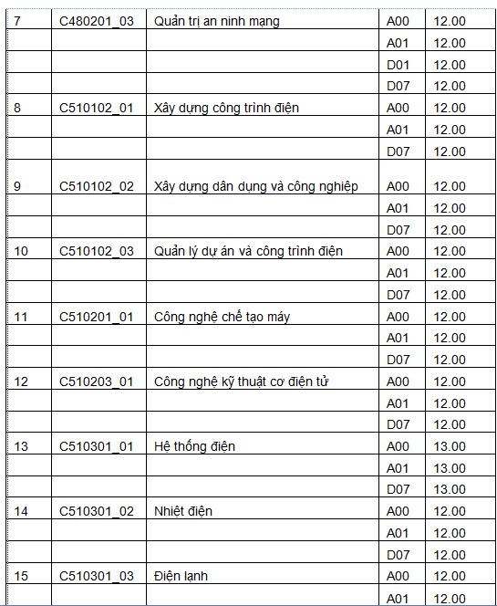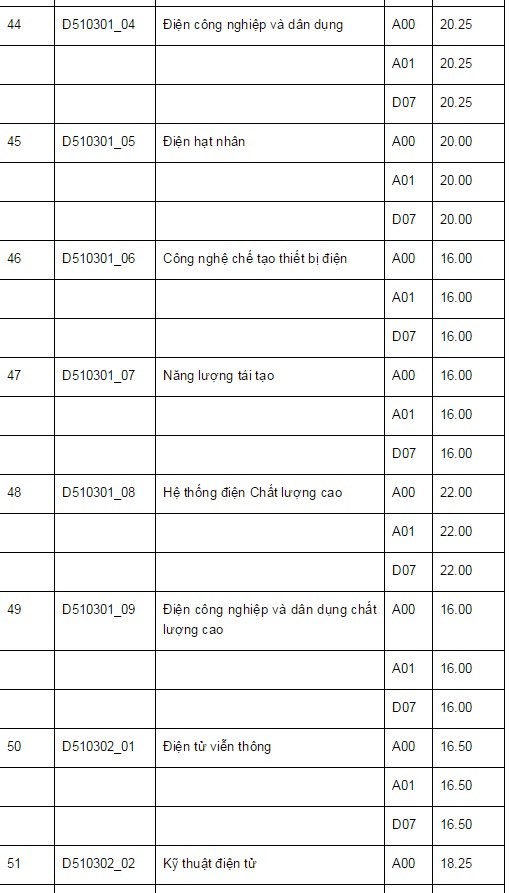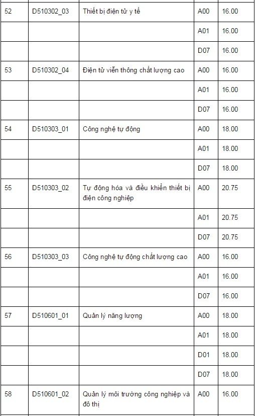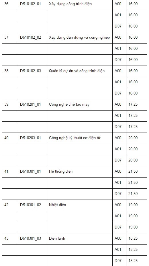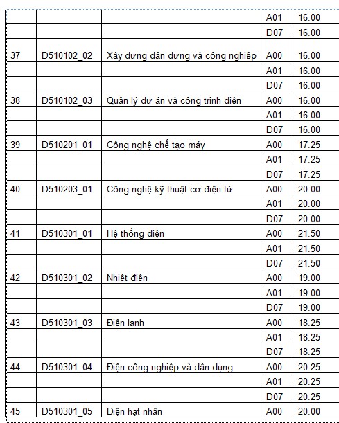 Đại học Điện lực có điểm chuẩn hệ đại học dao động từ 16-21 điểm.