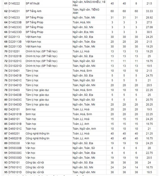 Đại học Sư phạm TP HCM công bố điểm chuẩn vào các ngành của trường.