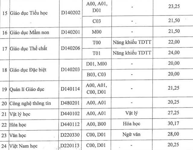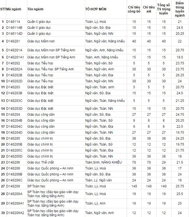 Đại học Sư phạm Hà Nội 2 thông báo điểm trúng tuyển đại học hệ chính quy năm 2015.