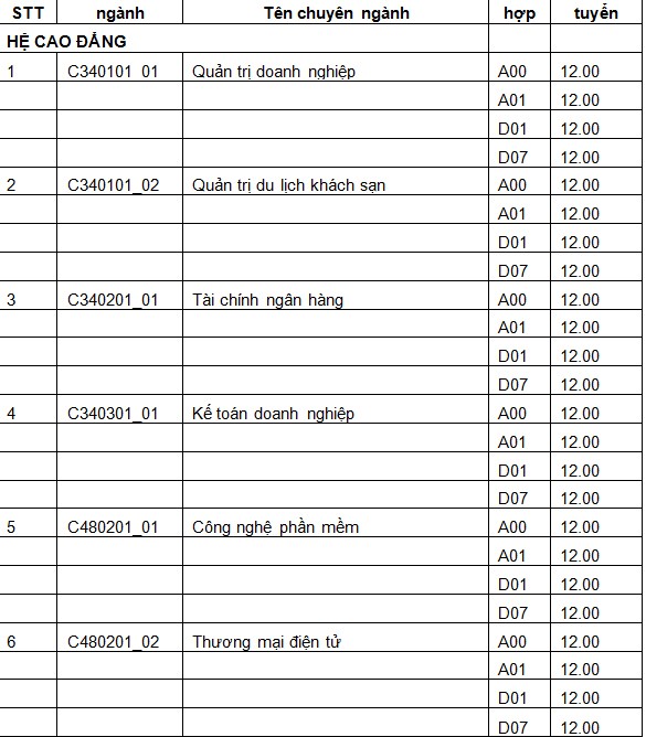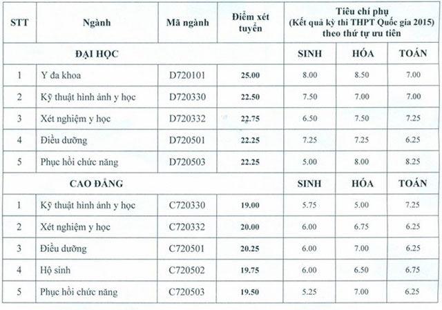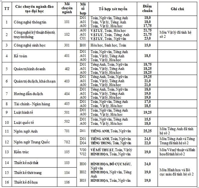 Điểm chuẩn: 15 (hệ đại học) và 12 điểm (hệ cao đẳng).
