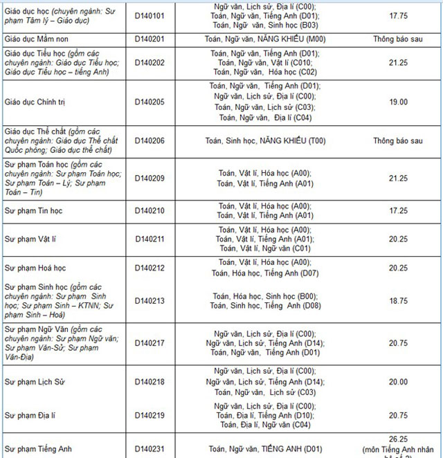 Điểm chuẩn chính thức của Đại học Sư phạm Thái Nguyên thấp nhất là 17,25 (ngành Sư phạm Tin học), cao nhất 26,25 (môn Tiếng Anh nhân hệ số 2).
