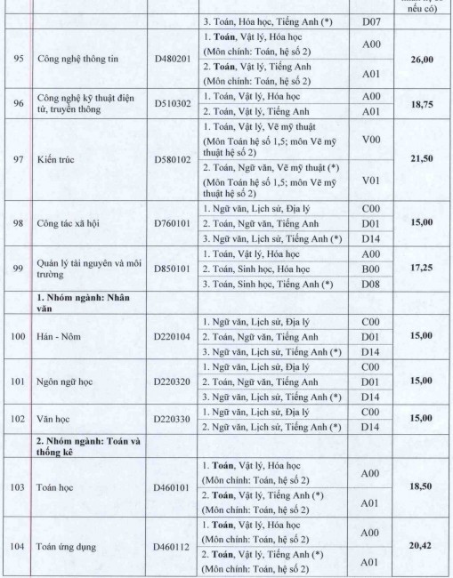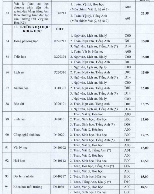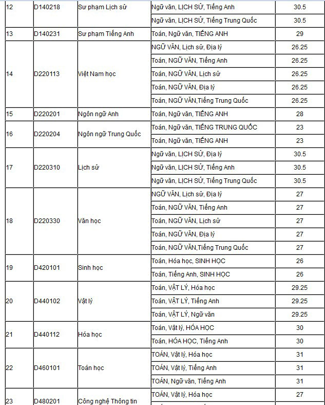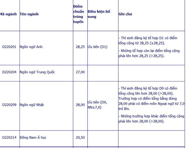 Danh sách các trường đại học công bố điểm chuẩn chính thức