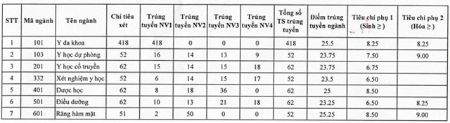 Đại học Kỹ thuật Y - dược Đà Nẵng công bố điểm trúng tuyển NV1 vào trường. Mức điểm trúng tuyển vào ngành Y Đa khoa là 25,75 điểm, tiêu chí phụ để đỗ vào ngành này là điểm sinh học đạt 9,25. Những ngành còn lại điểm chuẩn ở mức 21 đến 23,25 điểm.
