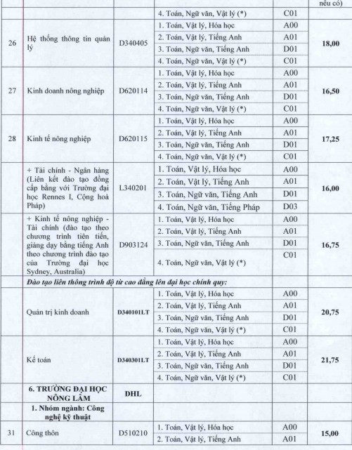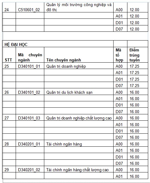 II. Điểm trúng tuyển hệ liên thông từ Cao đẳng lên Đại học
