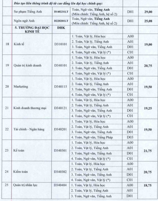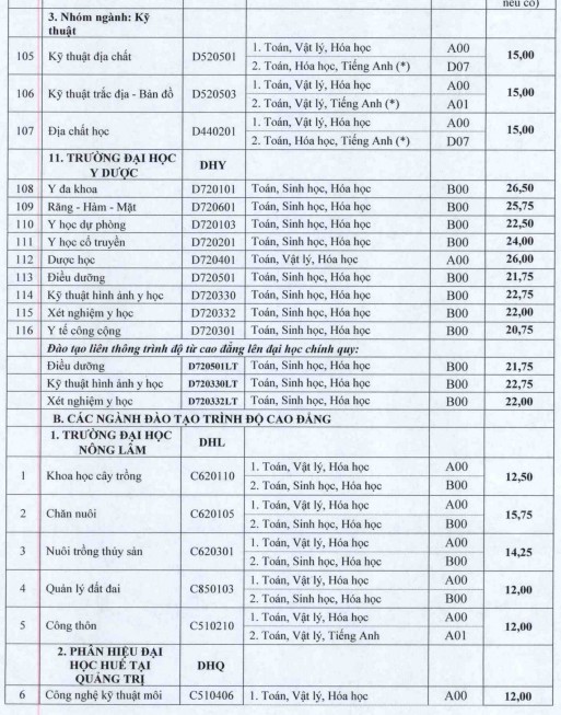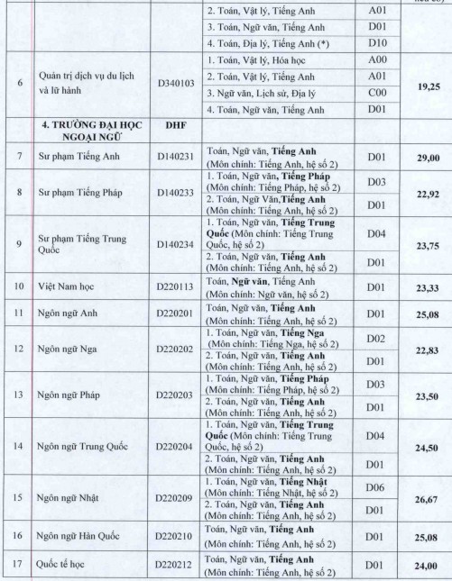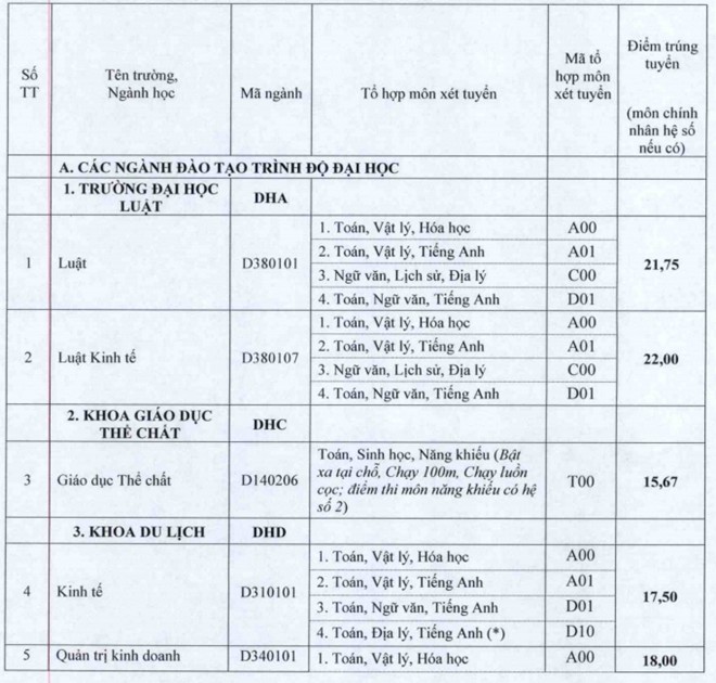 Đại học Huế đã công bố điểm chuẩn cho các trường thành viên.