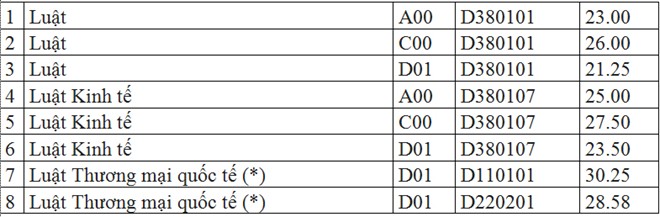 Điểm trúng tuyển của Đại học Luật Hà Nội.