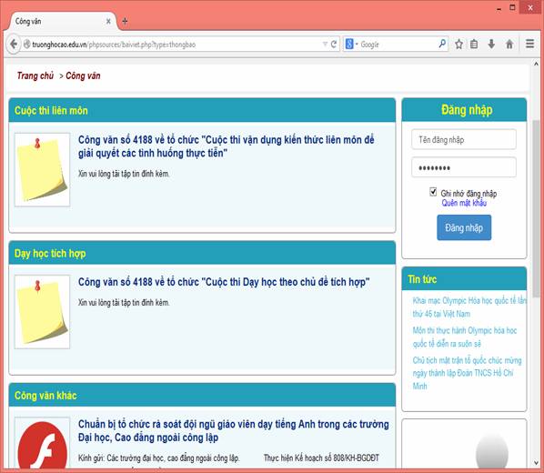 Khi truy cập vào website mà không đăng nhập bằng tài khoản cá nhân thì người dùng có thể tham khảo hệ thống thông tin và kho học liệu điện tử; có thể xem và dowload tài liệu, tranh, ảnh, video… hỗ trợ hoạt động dạy và học.