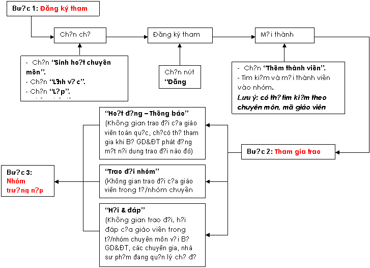 Quy trình tổ chức nhóm sinh hoạt chuyên môn trên hệ thống như sau: