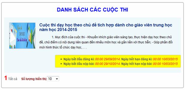 Cuộc thi “Dạy học theo chủ đề tích hợp” dành cho giáo viên được tổ chức trong phân hệ “Cuộc thi”.