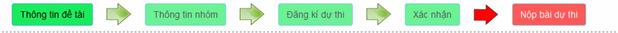 + Sau khi hoàn thành quy trình nộp phiếu đăng kí và đến thời gian nộp sản phẩm dự thi của cuộc thi (do Bộ GD&ĐT xác định ở mục II.2.1.1), NHÓM TRƯỞNG có nhiệm vụ nộp sản phẩm dự thi lên hệ thống.