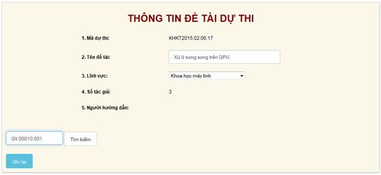 + Sửa chữa thông tin đề tài dự thi: Chọn nút
