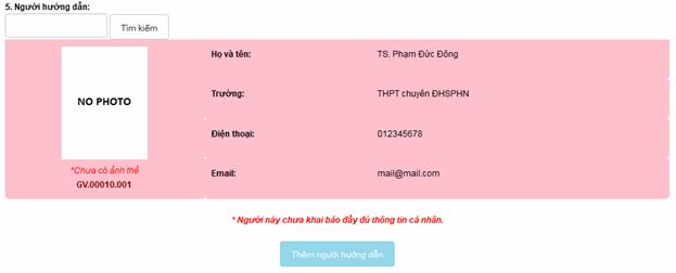 +Người hướng dẫn cần khai báo đầy đủ các thông tin cá nhân tối thiểu mà hệ thống yêu cầu thì NHÓM TRƯỞNG mới có thể thêm người hướng dẫn.