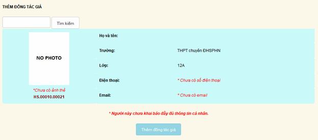 +NHÓM TRƯỞNG sẽ có nhiệm vụ thêm các thành viên trong nhóm tác giả dự thi theo cách giống như thêm Người hướng dẫn đã nêu ở mục trên.
