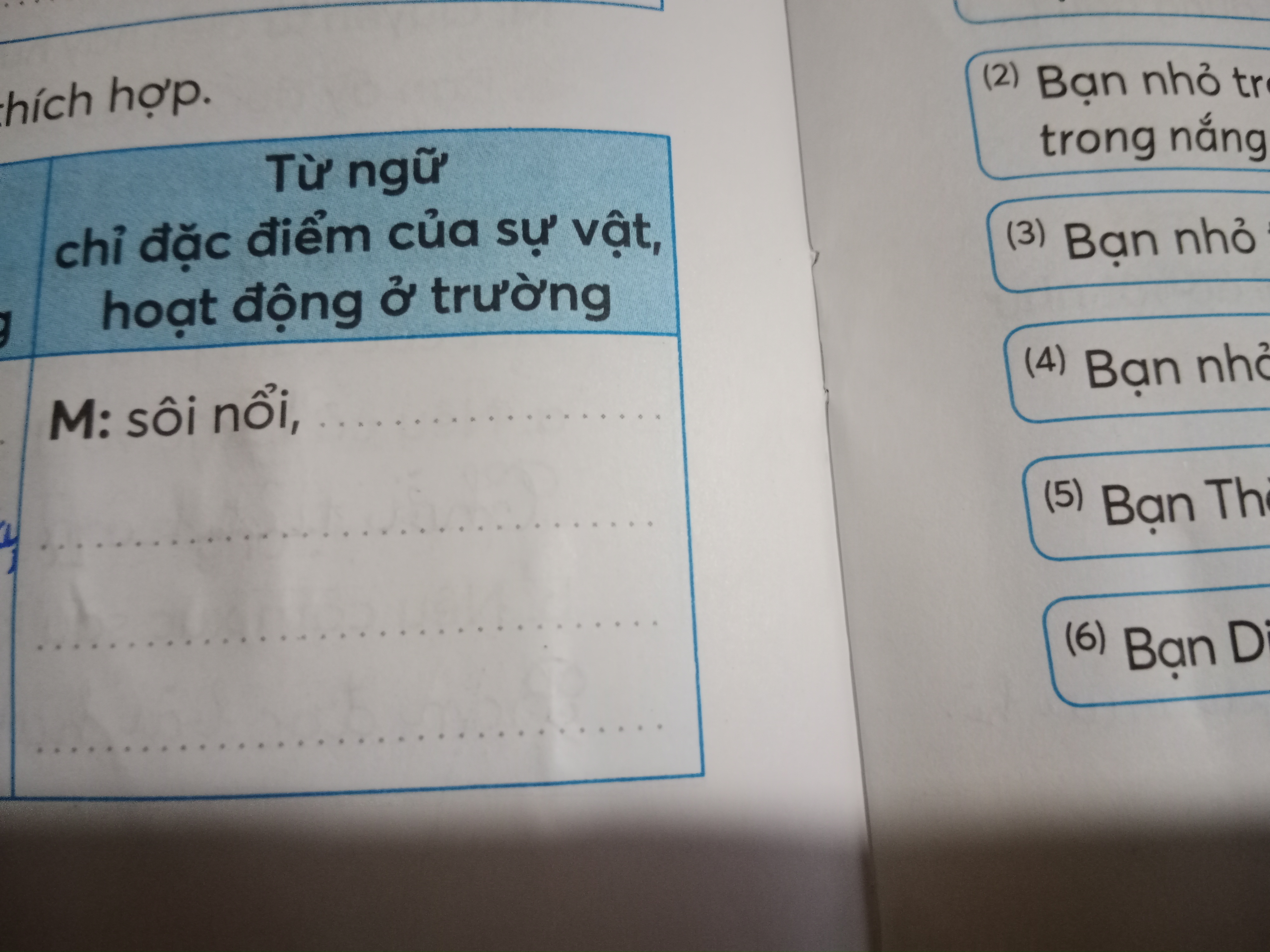 Từ ngữ chỉ đặc điểm của sự vật hoạt động ở trường