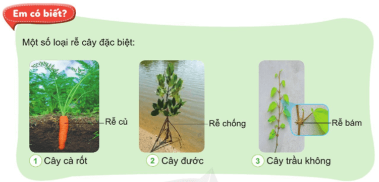Rễ cây còn có chức năng giúp cây bám chặt vào đất.