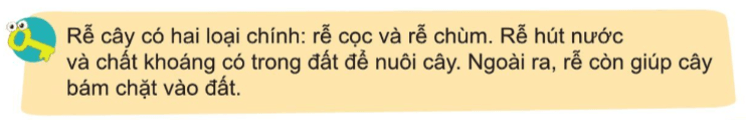 Chức năng của rễ cây là hút nước và chất khoáng để nuôi cây.