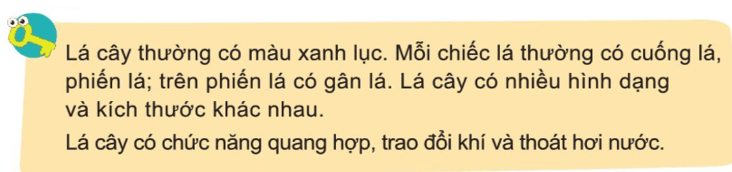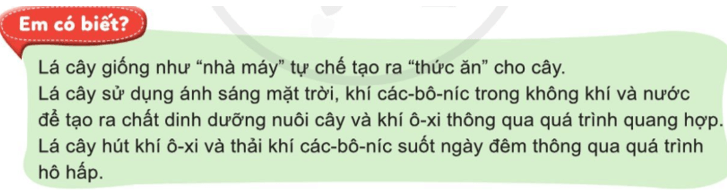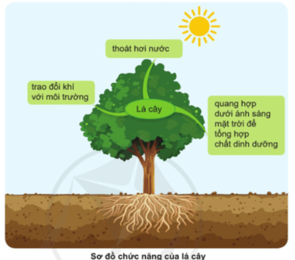 Giải Tự nhiên xã hội lớp 3 trang 68 câu hỏi: Dựa vào hình dưới đây, em hãy nêu chức năng của lá cây.