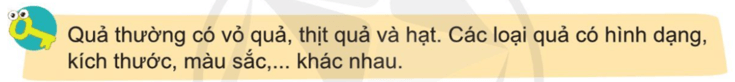 Học sinh chỉ và nói tên các bộ phận của quả: