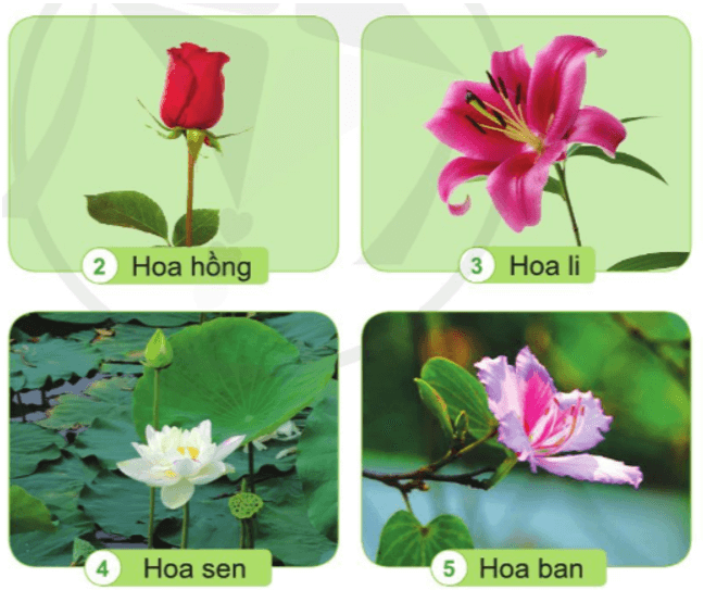 Giải Tự nhiên xã hội lớp 3 câu 2: So sánh kích thước, màu sắc, mùi hương của hoa trong các hình dưới dây.