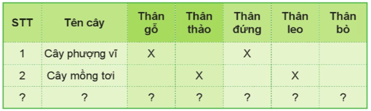 - Cây nào có thân gỗ, cây nào có thân thảo?