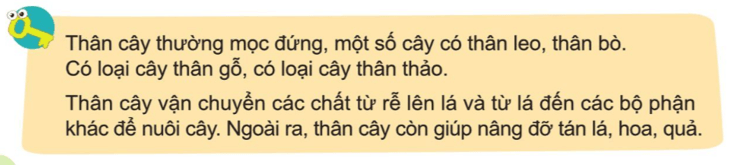 Thân cây còn có chức năng nâng đỡ tán lá, hoa, quả.