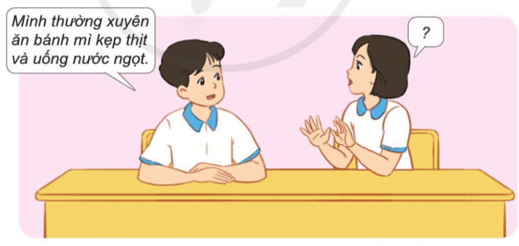 Em sẽ khuyên bạn không nên thường xuyên ăn bánh mì kẹp và uống nước ngọt. Vì các đồ ăn nhanh và nước ngọt rất có hại cho sức khỏe. Thay vào đó nên ăn nhiều loại trái cây, rau, thịt cá và các loại hạt,… và đặc biệt là uống nhiều nước.