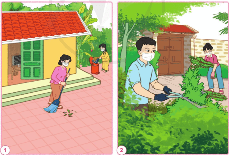- Hình 1: Quét dọn sân vườn.
