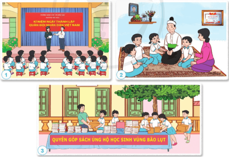 - Hình 3: Quyên góp sách ủng hộ học sinh vùng bão lụt.